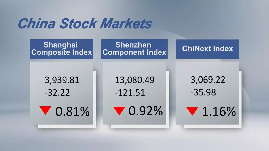 The Shenzhen Component Index closed 0.92 percent lower at 13,080.49 points. The ChiNext Index, tracking China's Nasdaq-style board of growth enterprises, lost 1.16 percent to close at 3,069.22 points Tuesday.
