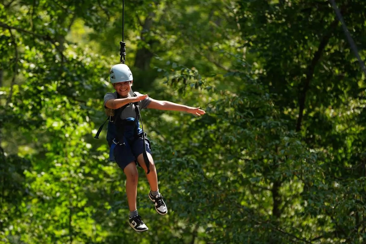 Dylan Aristy Mota, 12, of New York City, who has lupus, is hoisted in the air by fellow campers during an activity at the Frost Valley YMCA sleepaway camp in Claryville, N.Y., Wednesday, July 30, 2025. The camp partnered with Children's Hospital at Montefiore so kids with autoimmune diseases could attend for the first time. (AP Photo/Matt Rourke)