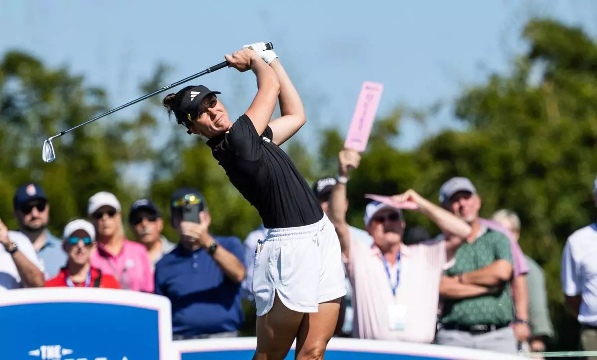 Linn Grant drives off a tee during the final round of The Annika LPGA golf tournament in Belleair, Fla., Sunday, Nov. 16, 2025. (AP Photo/Willie J. Allen Jr.)
