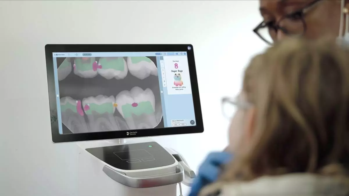 Second Opinion® for Kids displays AI-detected cavities as "sugar bugs", making it easier for dentists to explain oral health to young patients.