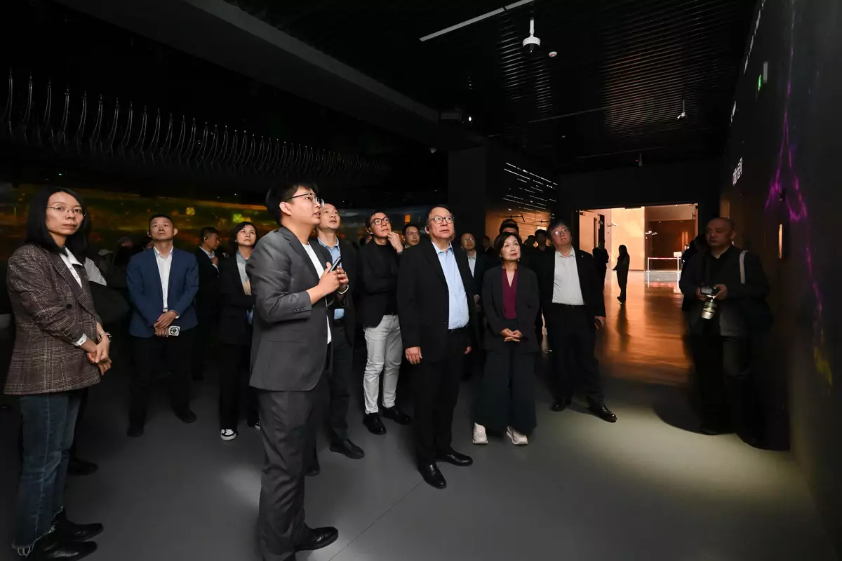The delegation of the Working Group on Planning and Construction of the University Town under the Committee on Development of the Northern Metropolis, led by the Chief Secretary for Administration, Mr Chan Kwok-ki, today (April 1) continued its visit. Representatives from the eight University Grants Committee-funded universities also joined the delegation today. They visited the Beijing Municipal Administrative Center and Xiong'an New Area in Hebei, which are listed as part of the "one core and two wings" national development strategy, to learn about practical experience in large-scale new area planning and construction, with a view to providing solid reference for the planning and construction of the Northern Metropolis University Town (NMUT).