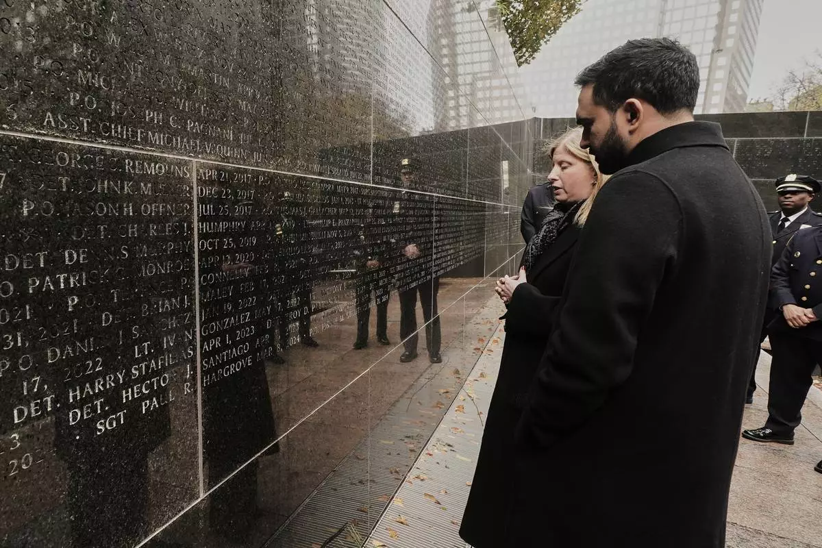 New York Mayor-elect Zohran Mamdani and New York City Police Commissioner Jessica Tisch visit the New York City Police Memorial, Wednesday, Nov. 19, 2025. (AP Photo/Richard Drew)