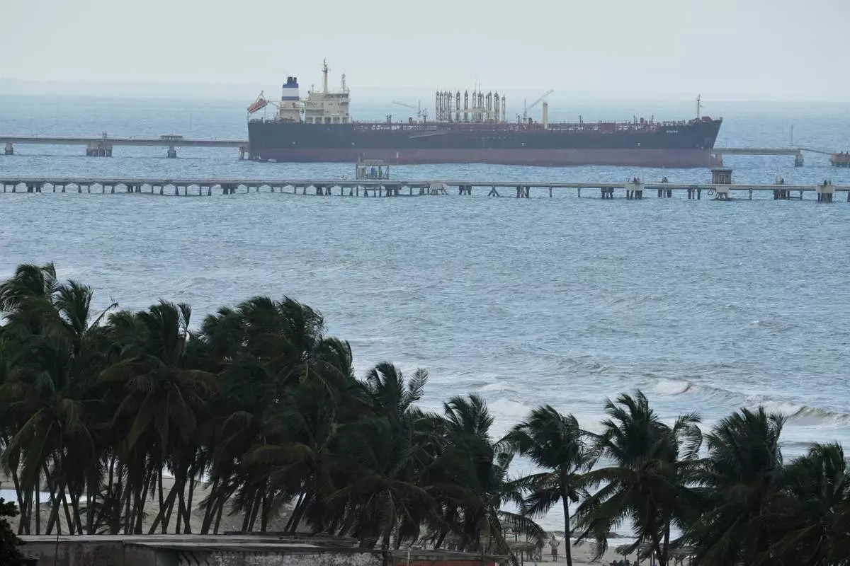 Evana, an oil tanker, is docked at El Palito port in Puerto Cabello, Venezuela, Sunday, Dec. 21, 2025. (AP Photo/Matias Delacroix)