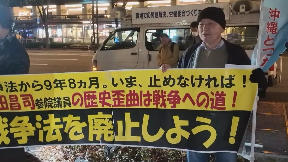 Protesters in Kyoto in western Japan rallied on Wednesday to denounce recent remarks from Prime Minister Sanae Takaichi regarding China's Taiwan Region, criticizing her rhetoric as provocative and dangerous.