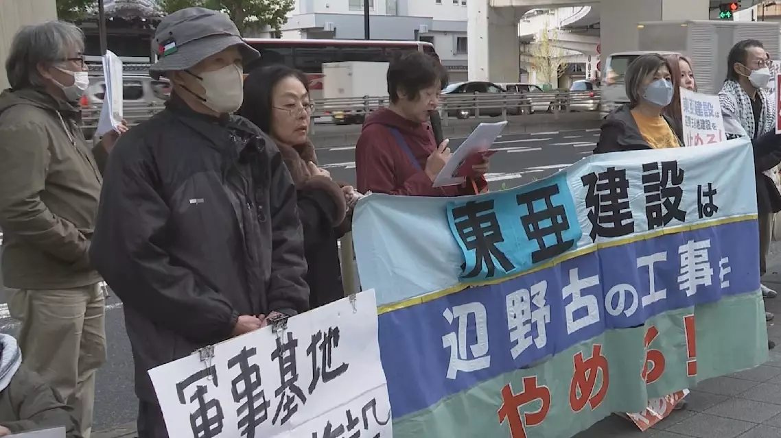 "The construction of the Henoko base is part of the efforts to strengthen military equipment. Such a construction plan will only make the burden on Okinawa heavier," said a protester.