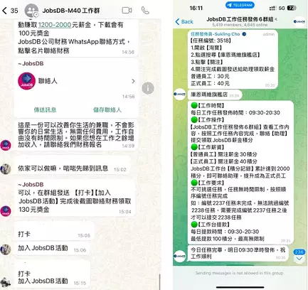 Fraudulent messages often include phrases like 'part-time activities,' to attract individuals with promises of monetary rewards for simply 'checking in' or completing tasks.