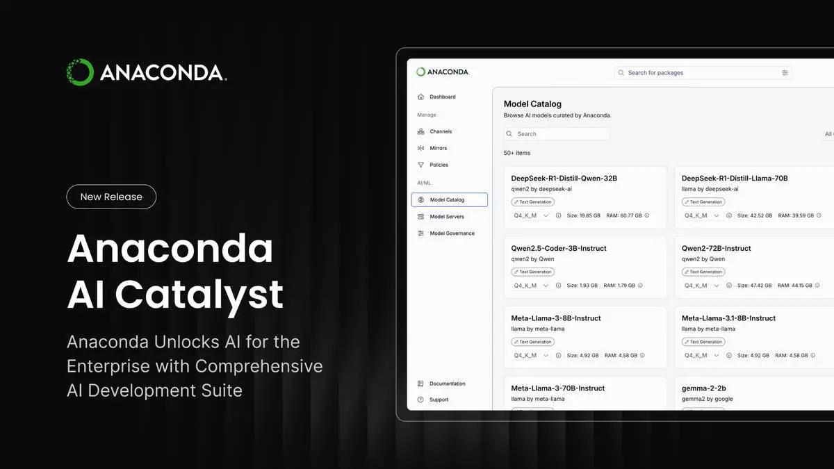 Anaconda Inc., the leader in advancing AI with open source, today launched AI Catalyst, an enterprise AI development suite within the Anaconda Platform, powered by AWS, that will deliver an end-to-end ecosystem for building, deploying, and governing AI applications. Available now for AWS customers, enterprises benefit from transparent, governed, and optimized AI development at scale. AI Catalyst launches with a curated model catalog of secure, vetted AI models to enable organizations to discover, select, test, compare, and run models in their own environment, reducing unknown risks and improving governance and cost efficiency.