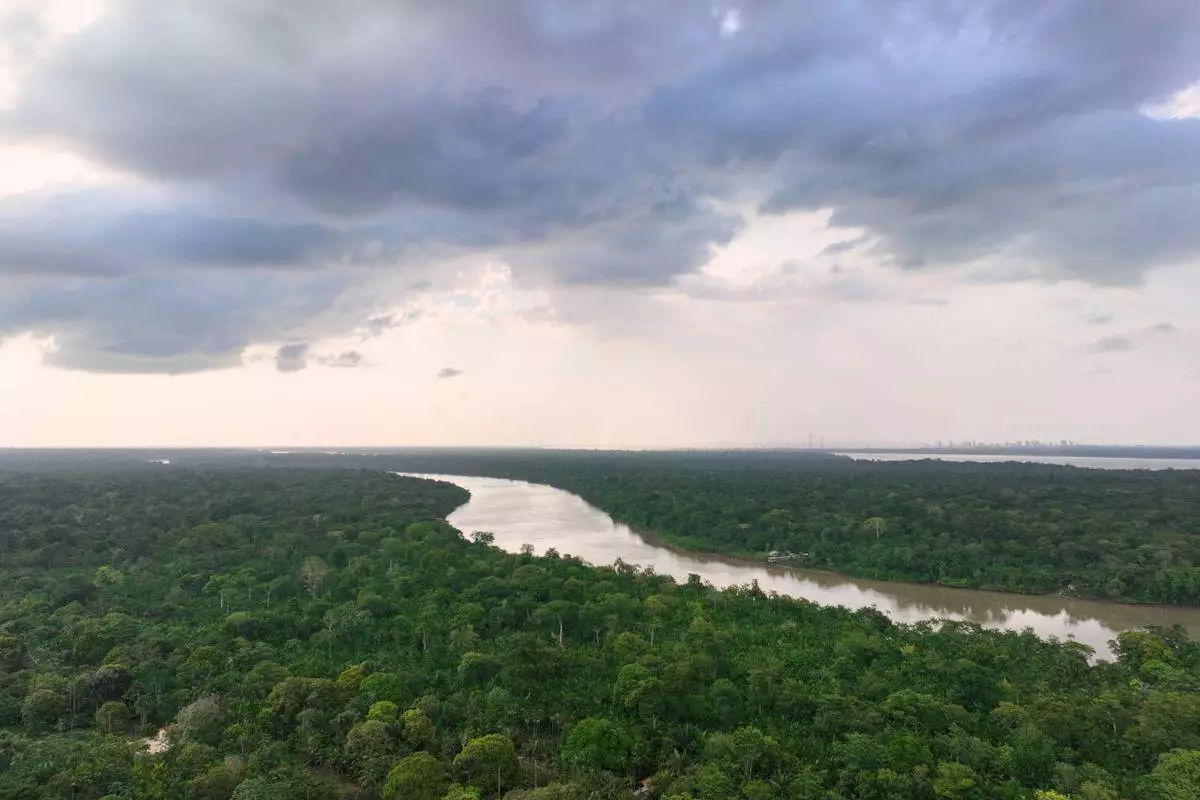 Trees surround the Guama River in Itacoa Miri, Brazil, Tuesday, Nov. 18, 2025. (AP Photo/Fernando Llano)