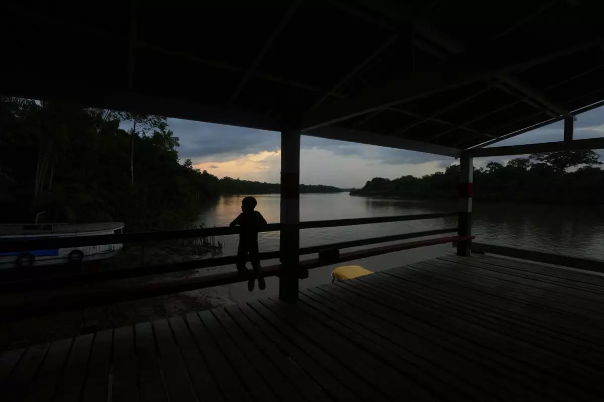 A boy waits for a boat at the harbor in Itacoa Miri, Brazil, Tuesday, Nov. 18, 2025. (AP Photo/Fernando Llano)