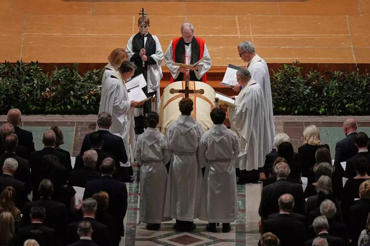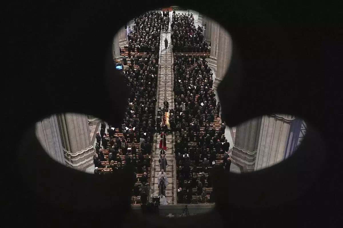 The funeral service for former Vice President Dick Cheney is held at the Washington National Cathedral, Thursday, Nov. 20, 2025 in Washington. (AP Photo/Matt Rourke)