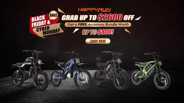 Whether you're conquering rugged trails on electric dirt bikes, commuting daily on fat-tire e-bikes, or taking weekend adventures with electric cargo bikes, Happyrun makes premium riding more accessible than ever. This Black Friday, get unbeatable value on a Happyrun electric bike—giving you the power and performance you need as you head into 2026.