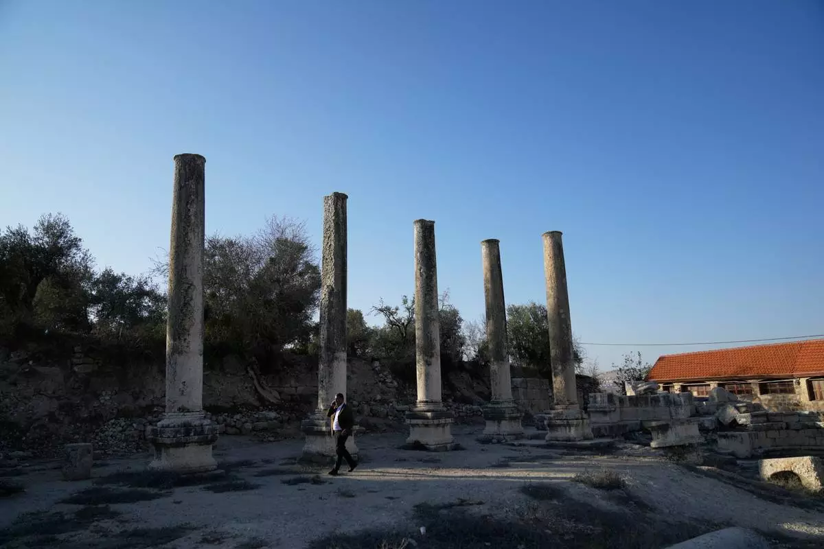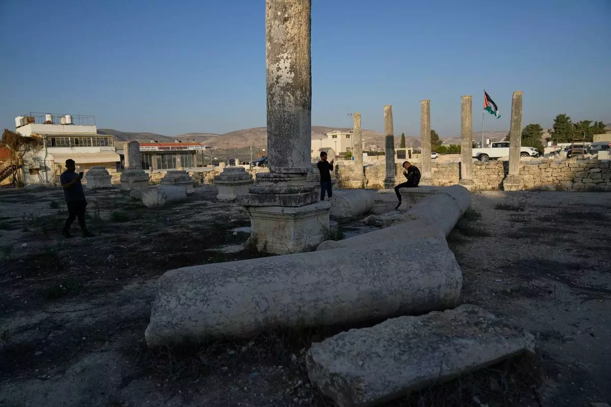 Palestinians visit the Roman historical site in the West Bank town of Sebastia Thursday, Nov. 20, 2025. (AP Photo/Nasser Nasser)