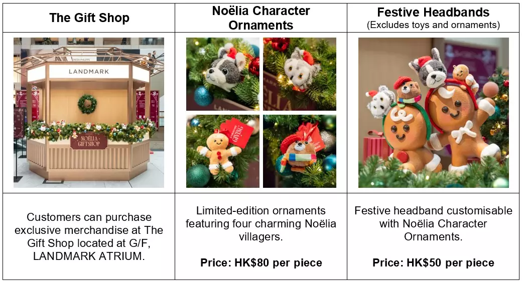 A curated range of Noëlia‑themed merchandise is available at The Gift Shop located at G/F, LANDMARK ATRIUM, giving visitors a chance to bring the village's holiday charm home.