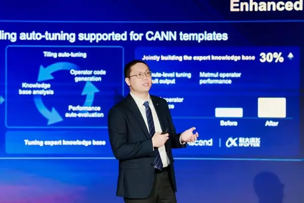 Mr. Ben Ding, Senior Director of Huawei Computing Asia Pacific Eco-development, introduced Huawei's CANN open-source initiative. After seven years of effort, Huawei has fully open-sourced its AI software stack, equipping developers with essential atomic capabilities. Currently, it supports over 50 leading open-source communities and projects, with more than 2,000 code requests submitted and over 370,000 lines of code committed, providing a robust technical foundation for enterprise intelligence upgrades.