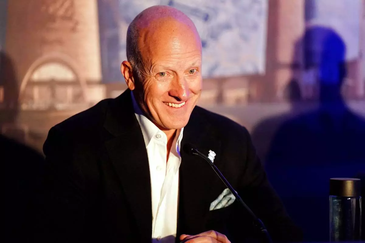 Birmingham City co-owner and chairman Tom Wagner during the unveiling of Birmingham City Football Club's new stadium plans in Birmingham, England, Thursday, Nov. 20, 2025. (Jacob King/PA via AP)