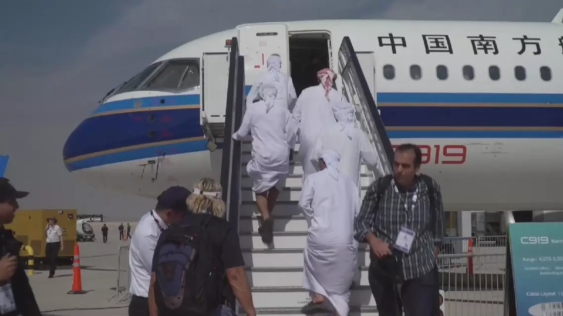 Around 50 Chinese companies attended the event, with COMAC C919 making its Middle East debut. China Southern Airlines opened the aircraft to visitors, who toured the cabin and cockpit.
