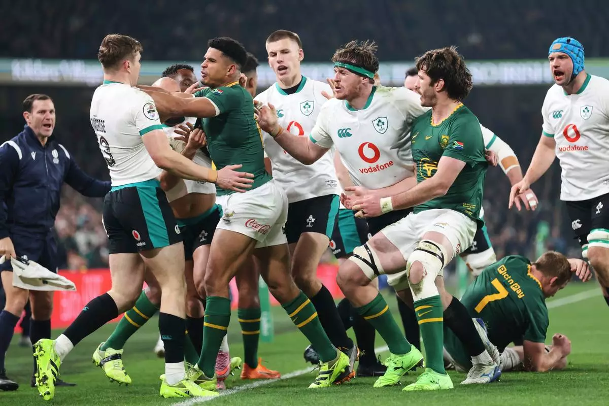 The Irish were unable to break the Springboks' defense in the second half, even after besieging their try-line for the last five minutes. They finally got a man advantage in the 78th when replacement Boks scrumhalf Grant Williams was yellow-carded but the visitors held out.