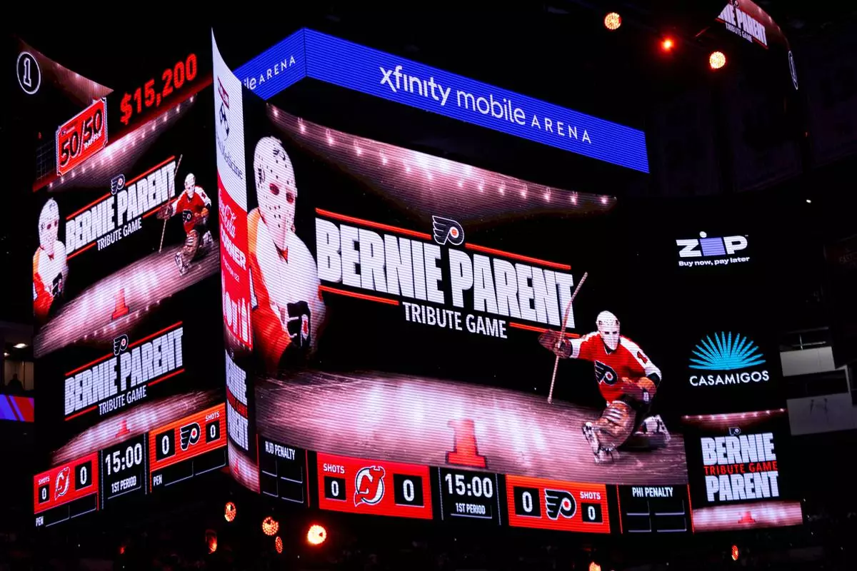 With that, the spotlight shone on Parent's retired No. 1 banner that hangs in the rafters, just a row ahead of the two oversized Stanley Cup championship banners — the only ones in franchise history — that catch the eye in Flyers orange and might not even exist at all if not for the affable goalie from Montreal.