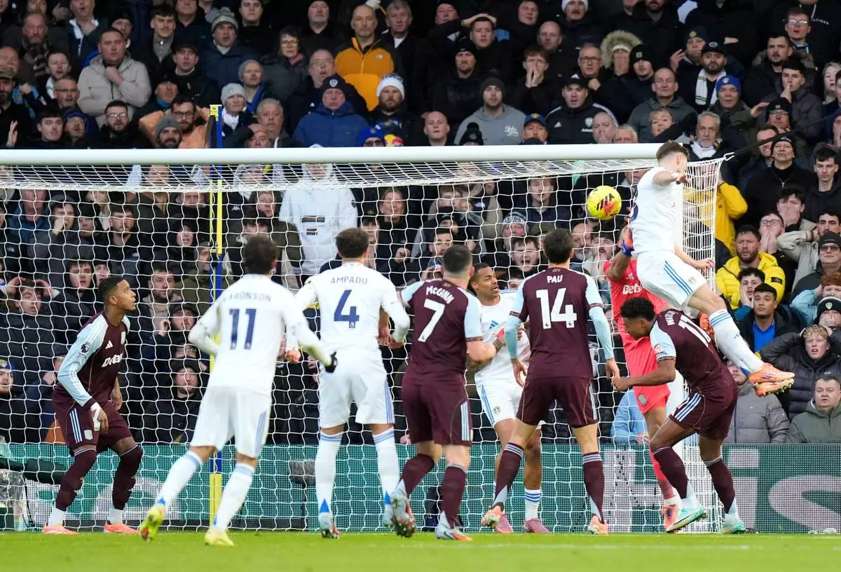 Leeds took the lead at a highly charged Elland Road when Lukas Nmecha bundled in from close range after Villa defender Ezri Konsa cleared the ball off the goalline following Anton Stach’s header. There was a video review to check if Villa goalkeeper Emi Martinez was impeded in the build-up but the goal was allowed.