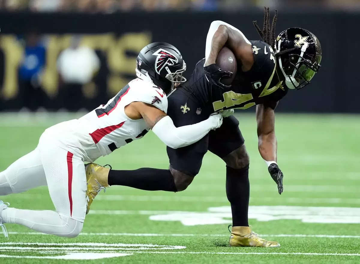 Kamara, New Orleans' leading rusher this season, made a short reception along the left sideline when he was tackled by Falcons linebacker Kaden Elliss — a former Saints teammate.