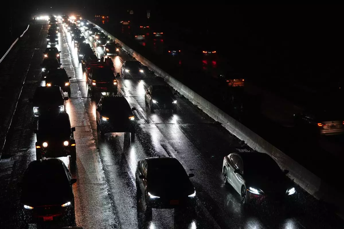 Cars drive on the Baltimore/Washington Parkway as seen from an overpass in Halethorpe, Md., Tuesday, Nov. 25, 2025. (AP Photo/Stephanie Scarbrough)