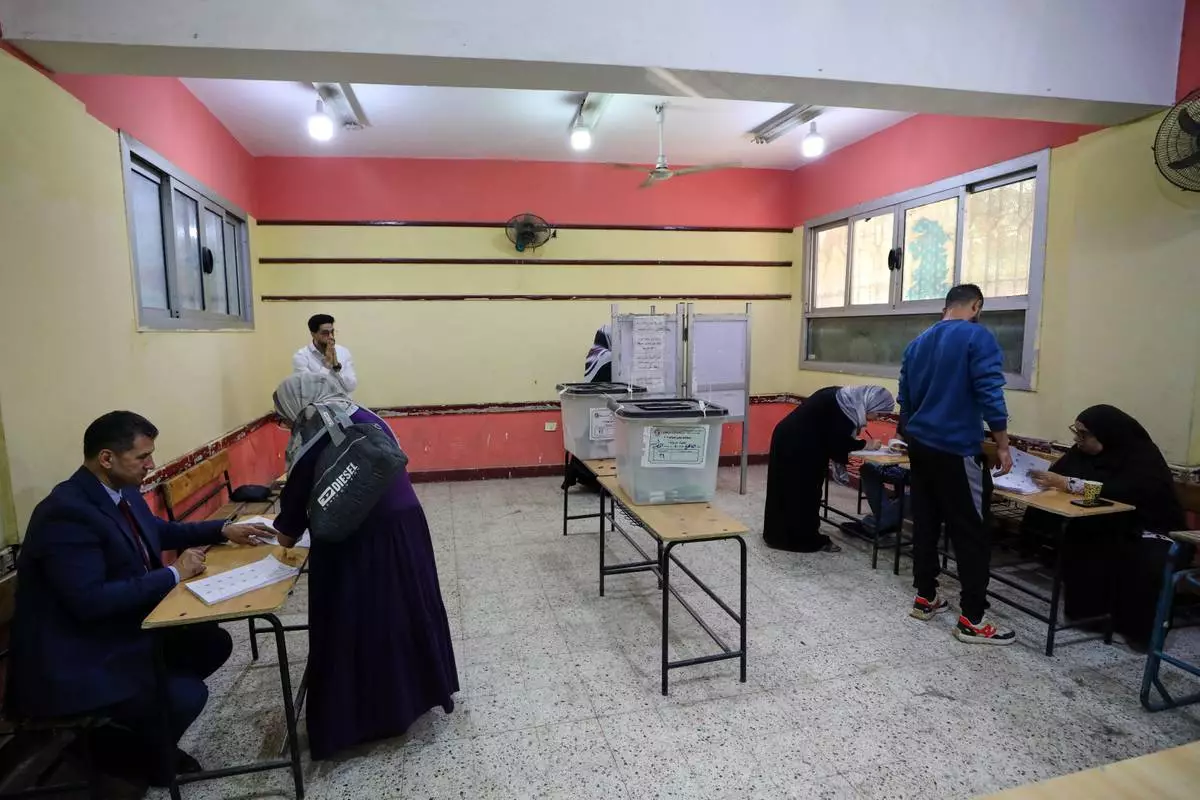 Egyptians cast their ballots during the second phase of parliamentary elections in Cairo, Egypt, Monday, Nov. 24, 2025. (AP Photo/Khaled Elfiqi)