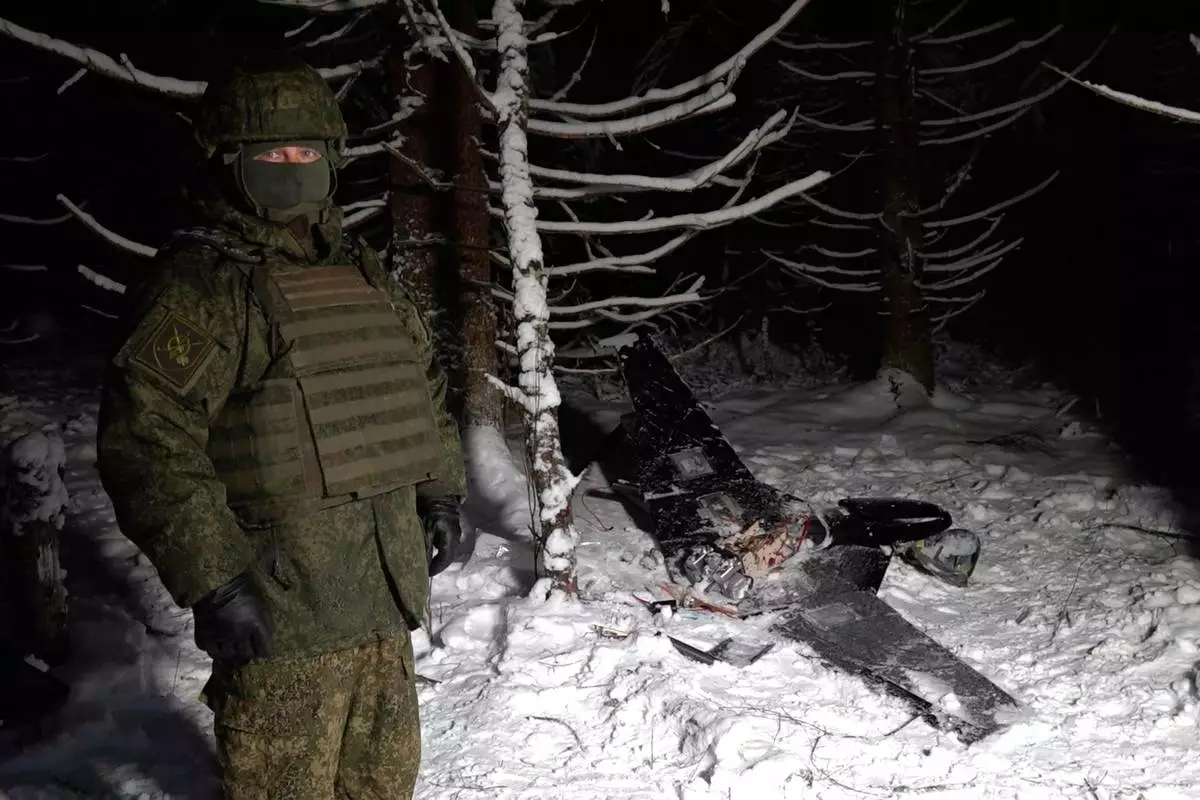 The nighttime video showed a man in camouflage, a helmet and a Kevlar vest standing near a damaged drone lying in snow. The man, his face covered, talks about the drone. Neither the man nor the Defense Ministry provided any location or date.