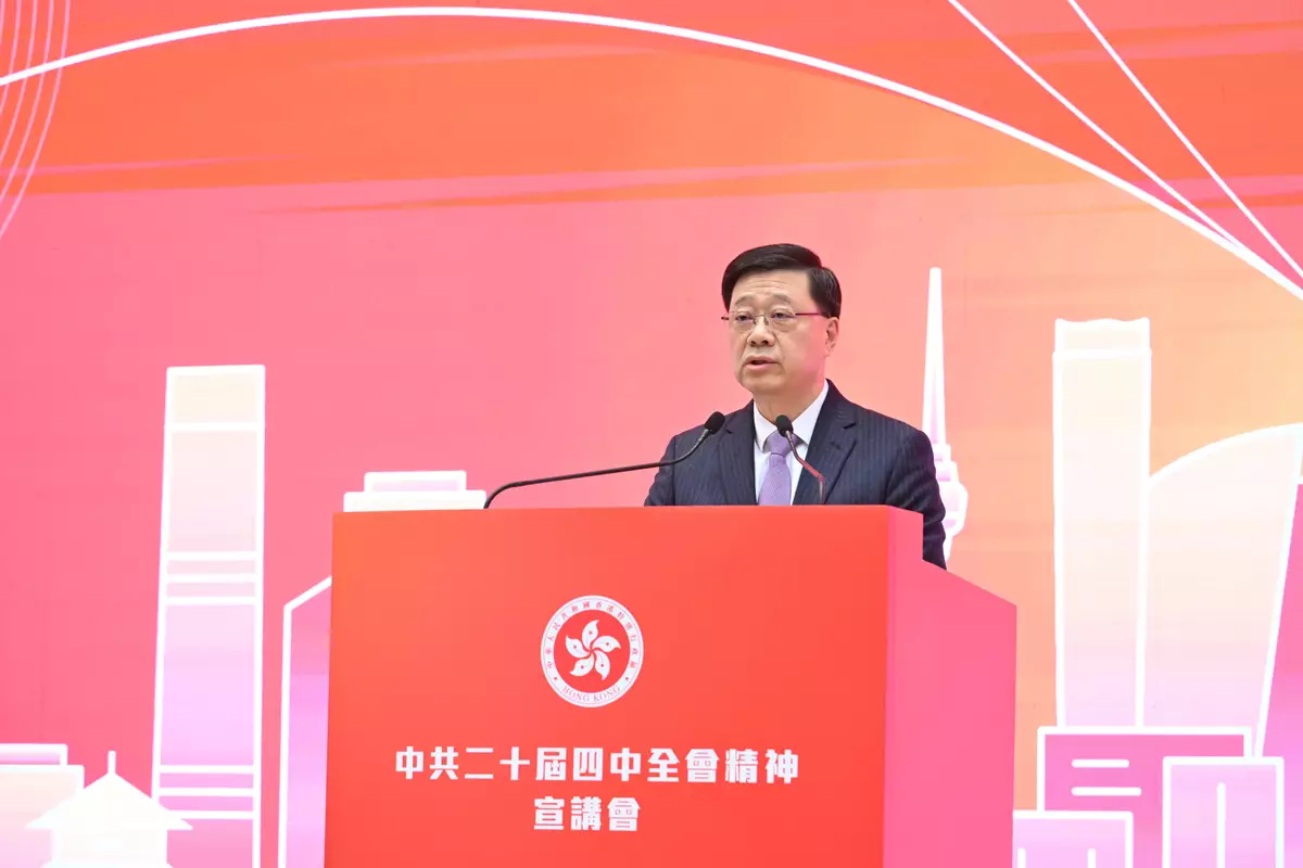 He said, "The Fourth Plenary Session of the 20th CPC Central Committee holds great significance. It is an important meeting convened at a critical juncture which falls on the successful conclusion of the 14th Five-Year Plan and the preparatory period of the 15th Five-Year Plan. Studying and implementing the spirit of the Fourth Plenary Session of the 20th CPC Central Committee well is a major task for us. At present, the world is undergoing accelerated transformations unseen in a century, but transformations often come with opportunities. The Recommendations for Formulating the 15th Five-Year Plan focus on high-quality development, achieving self-reliance and strength in science and technology through cultivating "new quality productive forces", and promoting high-level opening up, which bring historical opportunities to Hong Kong. We must gain a deep understanding of the guiding ideology, major principles, as well as the objectives and tasks, for the economic and social development during the 15th Five-Year period, assist Hong Kong in solidly advancing various measures for its economic and social development during the 15th Five-Year period, actively align with the national 15th Five-Year Plan, comprehensively promote the development of finance and innovation and technology as dual engines, engage in broader and closer exchanges and co-operation around the globe, and actively integrate into and serve the overall strategy of national development."