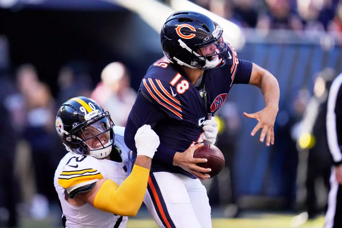 Montez Sweat strip-sacked Rudolph with the Bears leading by three in the third quarter. That led to Kyle Monangai scoring from 2 in the opening minute of the fourth to make it 31-21.