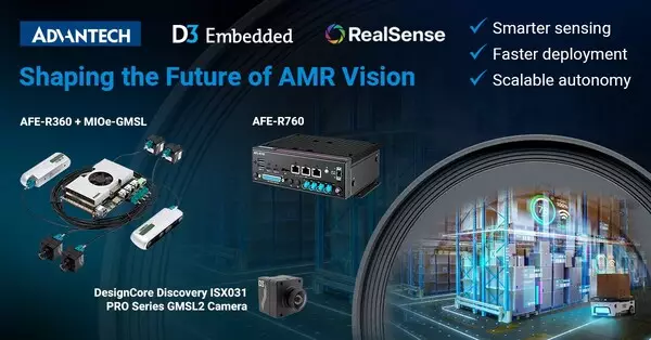 Advantech, a global leader in AIoT and Edge Computing announced its collaboration with D3 Embedded, a leading global end-to-end edge AI solution provider for performance-critical applications. This collaboration leverages Advantech's AFE-R360/R760 solutions based on Intel Core Ultra, RealSense™ Depth D457 GMSL2 Cameras, and D3 Embedded's customizable DesignCore® Discovery ISX031 PRO Series GMSL2 Cameras to enhance AI-powered object sensing and recognition capabilities, expanding visual applications for Autonomous Mobile Robots (AMRs). This advanced AMR solution targets key industrial applications including manufacturing, warehouse, and retail automation.