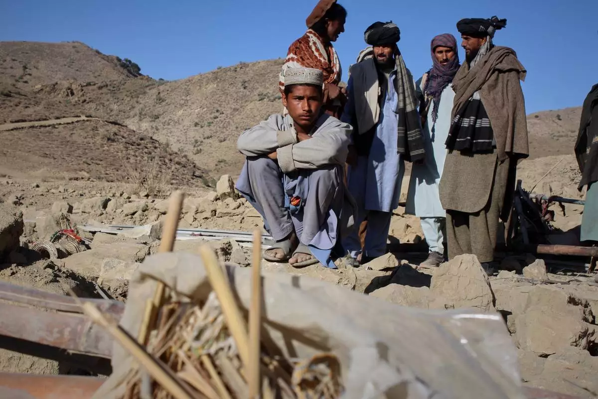 An Afghan boy sits beside the rubble of a home struck in an overnight attack that, according to an Afghan government spokesman, was carried out by Pakistan, in the Gurbaz district of Khost province, Afghanistan, Tuesday, Nov. 25, 2025. (AP Photo/Saifullah Zahir)