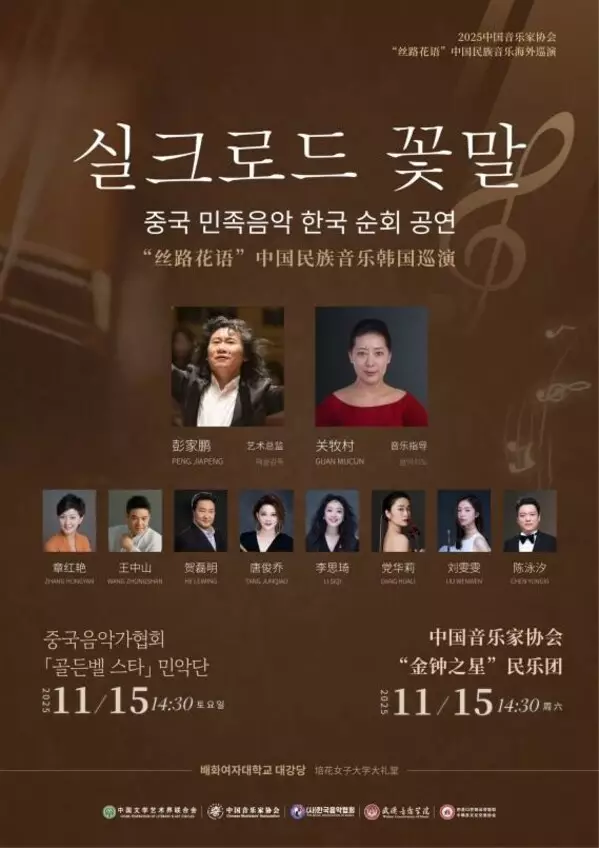 SHENZHEN, China, Nov. 25, 2025 /PRNewswire/ -- The "Golden Bell Stars" Modern Chinese Orchestra, led by the Chinese Musicians' Association, kicked off the "Silk Road Blossoms" Chinese Folk Music Tour in Korea.