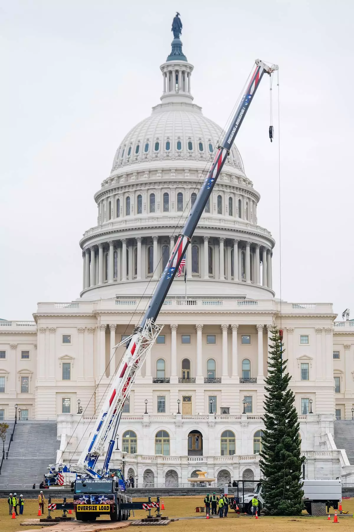 The Capitol Christmas Tree, a 53-foot red fir, arrives to the U.S. Capitol from the Humboldt-Toiyabe National Forest in Nevada, Friday, Nov. 21, 2025, in Washington. (AP Photo/Julia Demaree Nikhinson)