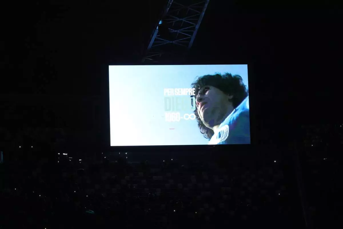 A video of Maradona was shown on the big screens in the stadium before Napoli’s match against Qarabağ in the Champions League on Tuesday, with the stadium announcer saying: “Napoli wants to remember you with a special video. Five years ago the greatest of all time left us.”