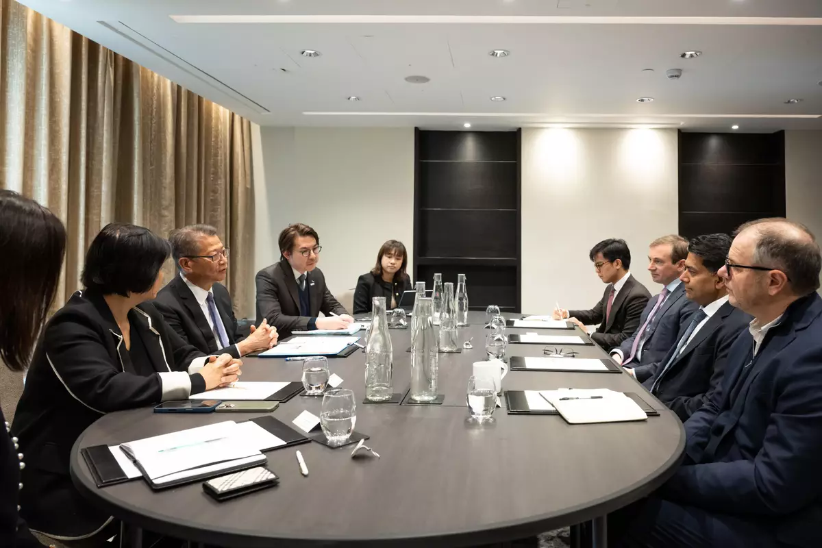 Upon arrival, Mr Chan met with representatives from family offices across Europe, the Middle East and Asia. He highlighted Hong Kong's investment opportunities in the areas of finance and innovation and technology (I&T), the city's vibrant ecosystem for philanthropy and impact investing, and its high-quality living environment. He welcomed them to establish a presence in Hong Kong. Mr Chan also held a meeting with a financial institution that is planning to set up operations in the city.