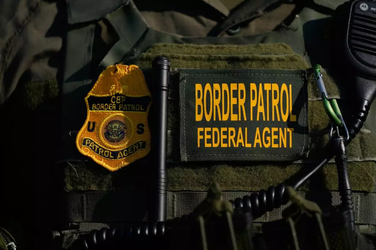 FILE - A Federal Patrol agent's badge is seen near an Immigration and Customs Enforcement facility in Broadview, Ill., Oct. 3, 2025. (AP Photo/Erin Hooley, File)