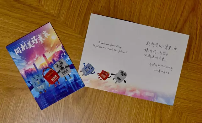 The Hong Kong Special Administrative Region Government announced today (November 26) that, to express gratitude for the public's support in the Legislative Council General Election and for casting their valuable votes on polling day, a thoughtfully designed thank-you card will be produced and presented to voters after they have cast their votes on polling day.