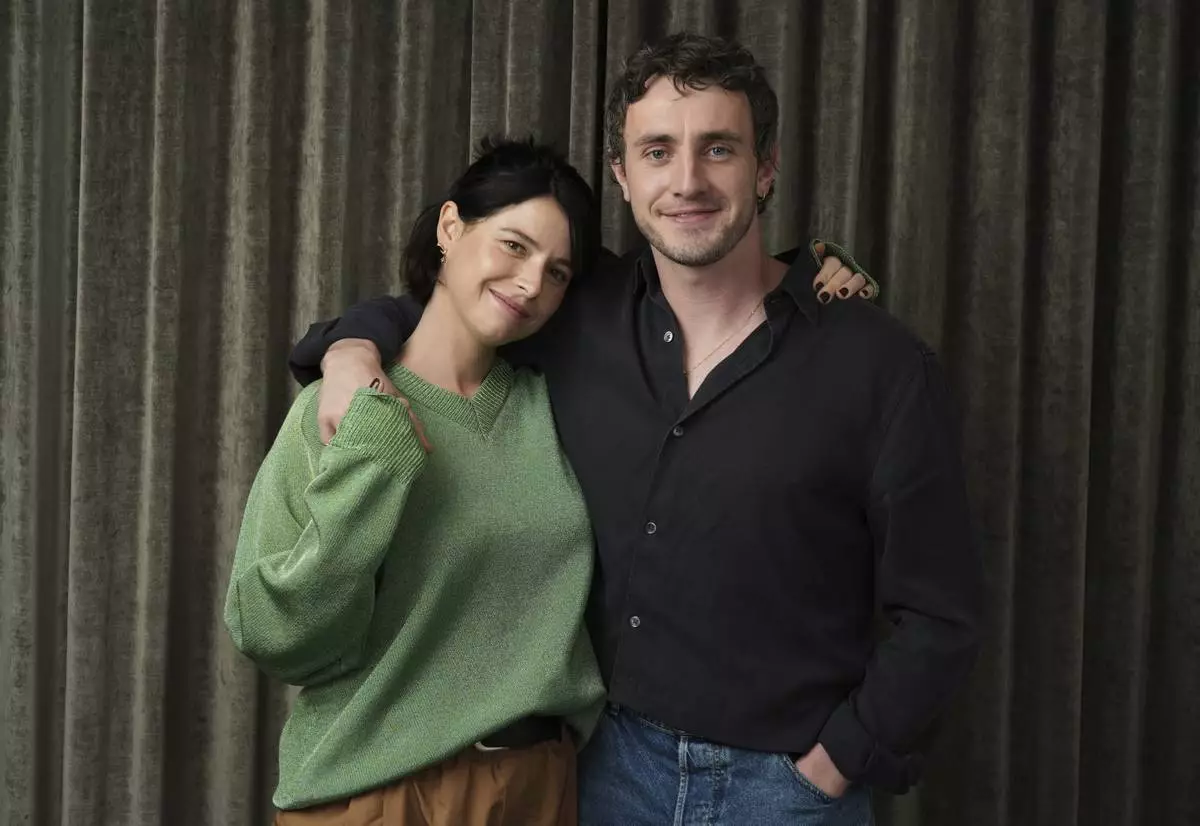 Jessie Buckley, left, and Paul Mescal, cast members in the film "Hamnet," pose for a portrait during the Toronto International Film Festival on Sept. 7, 2025. (AP Photo/Chris Pizzello)