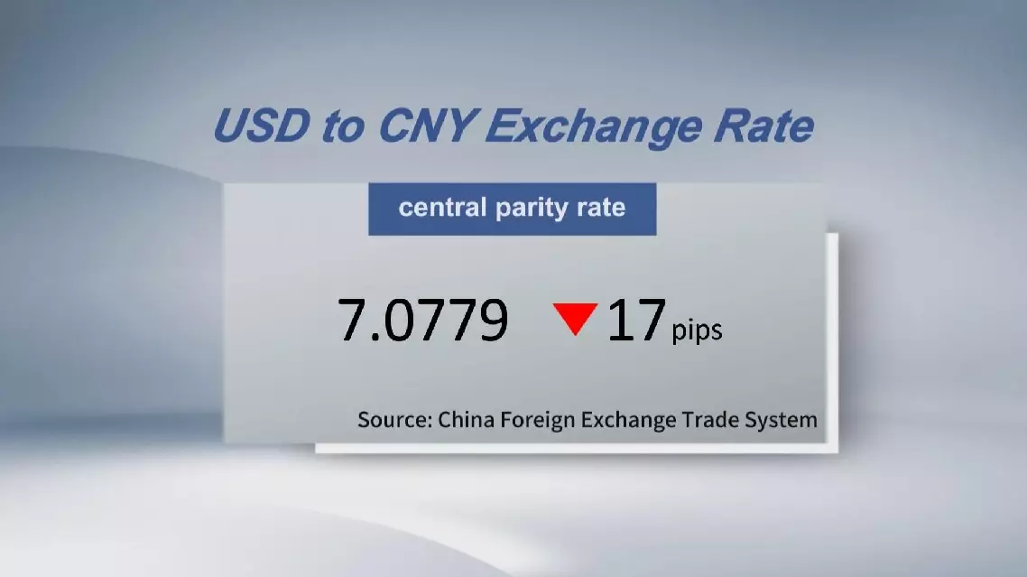 The central parity rate of the Chinese currency renminbi, or the yuan, strengthened 17 pips to 7.0779 against the U.S. dollar Thursday, according to the China Foreign Exchange Trade System.