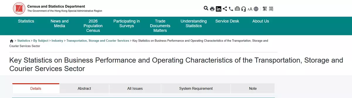 More detailed survey results on the transportation, storage and courier services sector will be given in the report "Key Statistics on Business Performance and Operating Characteristics of the Transportation, Storage and Courier Services Sector in 2024". Users can browse and download this report at the website of C&SD (www.censtatd.gov.hk/en/EIndexbySubject.html?pcode=B1080010&scode=340) as from end-December 2025.