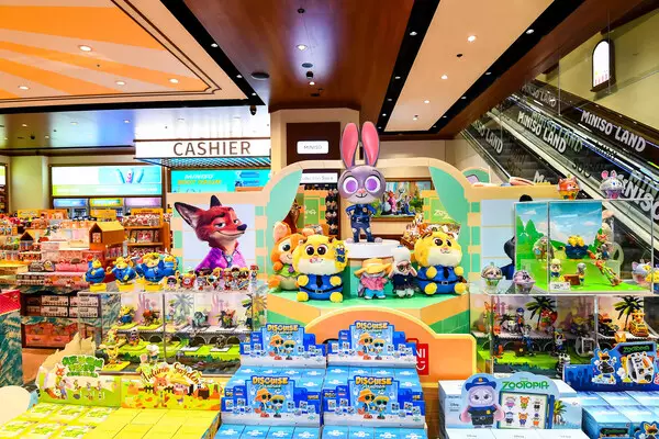 Spanning over 800 square meters, the store features a warm, natural wood design that creates a comfortable and inviting atmosphere. Inside, customers are greeted by multiple key product zones and immersive themed zones, including dedicated areas for the newly launched Disney's Zootopia 2-inspired collection and popular Sanrio collections, complemented by high-standard window displays and outdoor LED screens for a rich sensory experience.