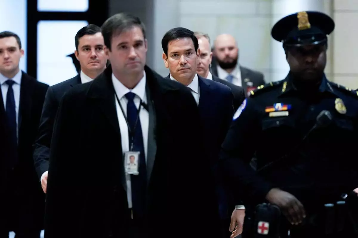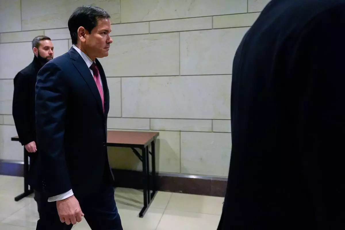 Secretary of State Marco Rubio arrives to brief members of Congress on military strikes near Venezuela, Tuesday, Dec. 16, 2025, at the Capitol in Washington. (AP Photo/Julia Demaree Nikhinson)
