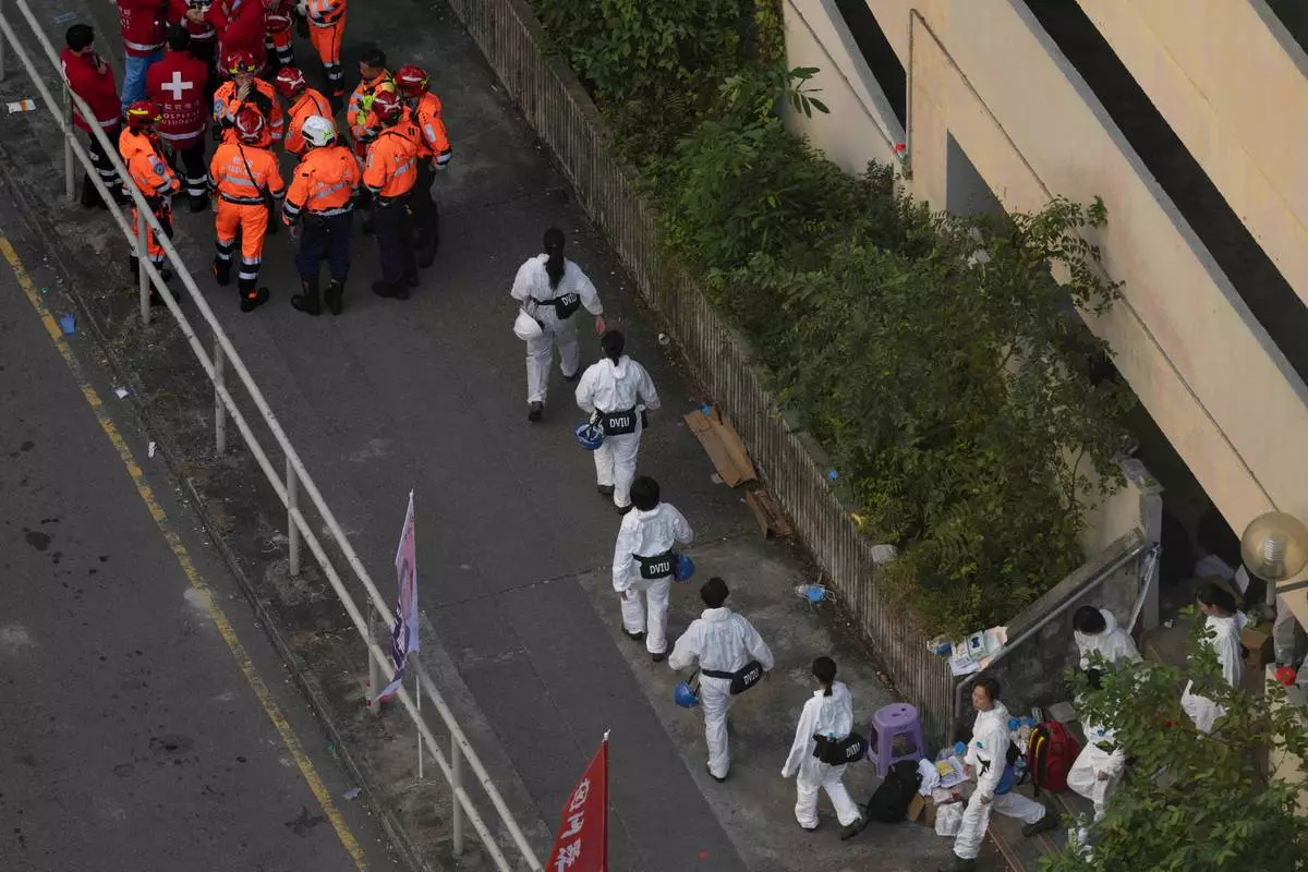 HONG KONG (AP) — Hong Kong firefighters found dozens more bodies Friday in an intensive apartment-by-apartment search of a high-rise complex where a massive fire engulfed seven buildings, and authorities arrested another 8 people involved in the towers' renovation. The death toll in one of the city's deadliest blazes rose to 128, and many remain unaccounted for.
