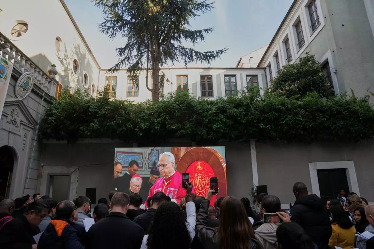 Excitement filled the exterior and interior of Istanbul’s Cathedral of the Holy Spirit as Pope Leo XIV arrived Friday. Worshippers applauded and cheered while the pontiff made his way down the aisle