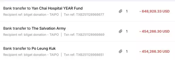 To ensure that relief reaches those in need in a structured and accountable way, Bitget has mandated three of Hong Kong's most trusted charities to execute the $12,000,000 HKD ($1.54M USD approx.) donation. All of the donations has been executed. Yan Chai Hospital has received $5,000,000 HKD ($640,000 USD) to support emergency medical services, treatment for the injured, and rehabilitation for affected families. The Salvation Army Hong Kong has received $3,500,000 HKD ($450,000 USD approx.) to provide financial assistance, temporary accommodation, basic necessities, and livelihood support for households that have lost homes and income. Po Leung Kuk has received $3,500,000 HKD ($450,000 USD approx.) to deliver psychological counselling, community outreach, and long-term case follow-up for survivors, bereaved families, and vulnerable residents in the surrounding area.