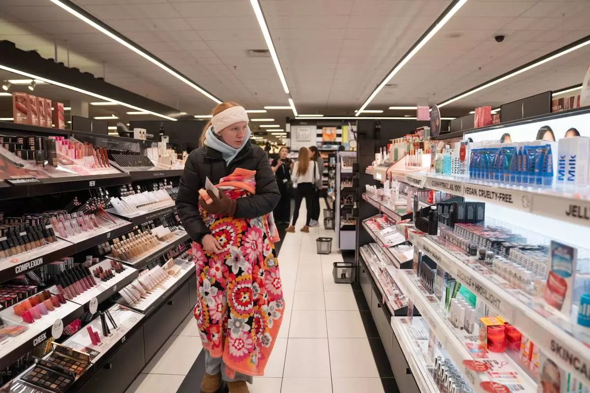 Black Friday Shoppers browse products at Macy's flagship store in New York on Friday, Nov. 28, 2025. (AP Photo/Angelina Katsanis)