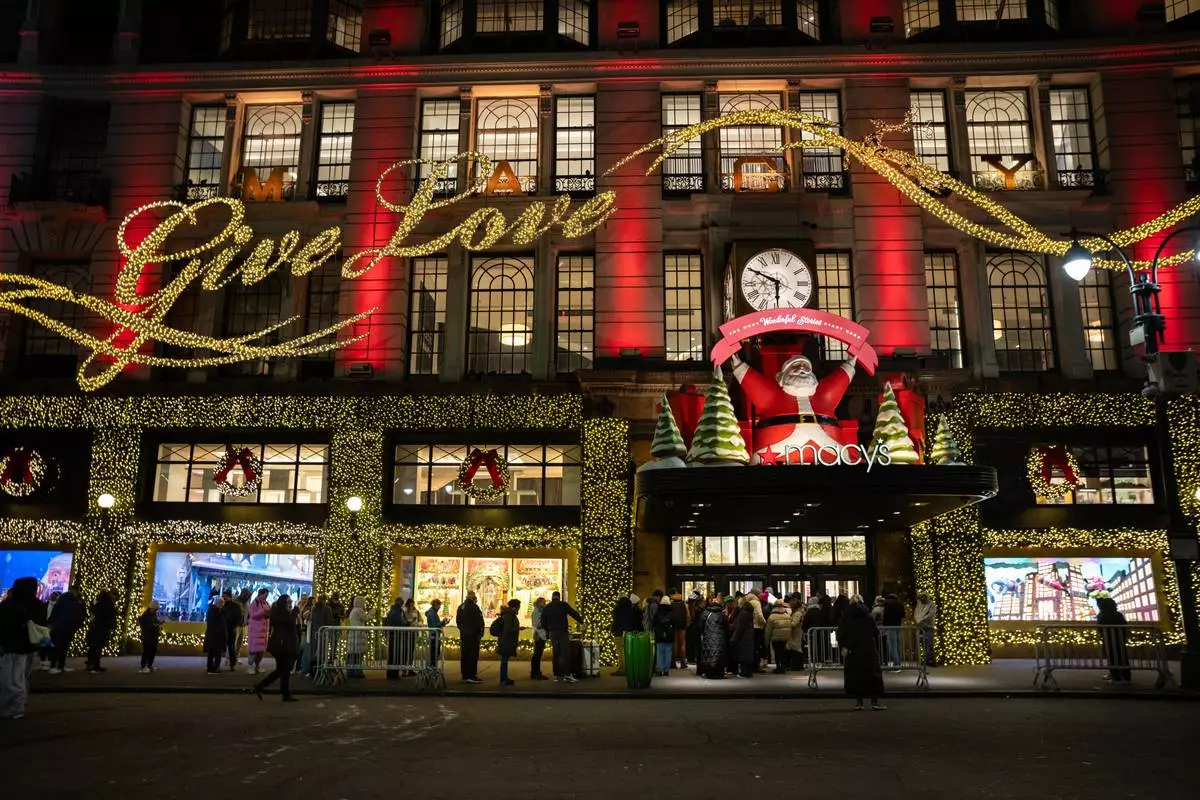 Black Friday Shoppers arrive to Macy's flagship store in New York on Friday, Nov. 28, 2025. (AP Photo/Angelina Katsanis)