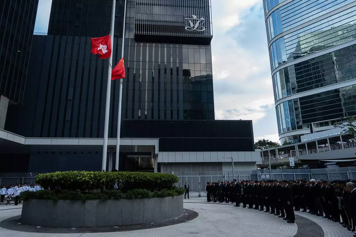 The city lowered flags to half staff in mourning, and Chief Executive John Lee, led a three-minute silence Saturday from the government headquarters with officials all dressed in black.