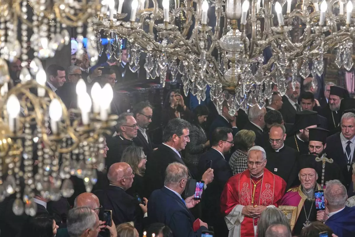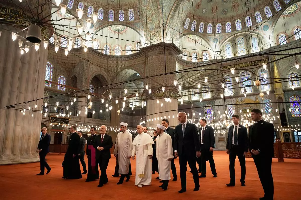 ISTANBUL, Turkey (AP) — Pope Leo XIV visited Istanbul’s iconic Blue Mosque on Saturday but didn't stop to pray, as he focused more on bolstering ties with Orthodox patriarchs and promoting courageous steps for Eastern and Western churches to be united.