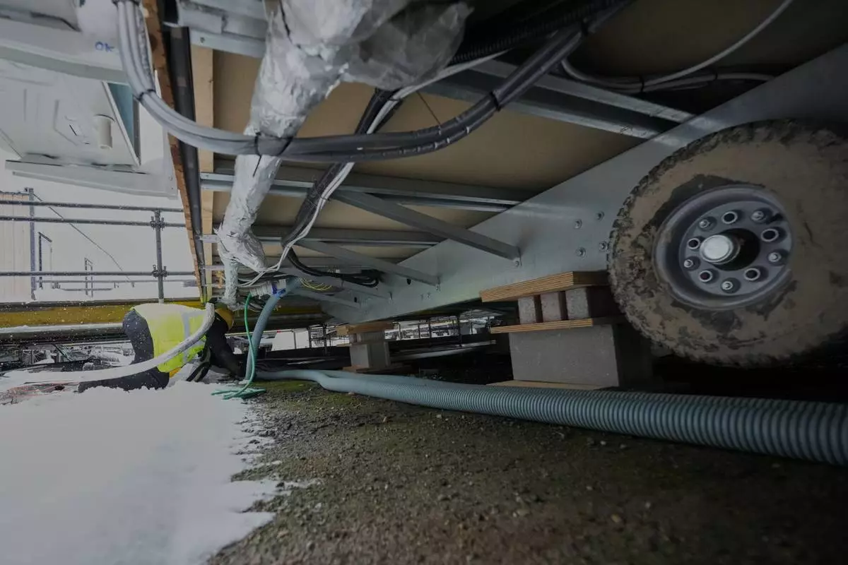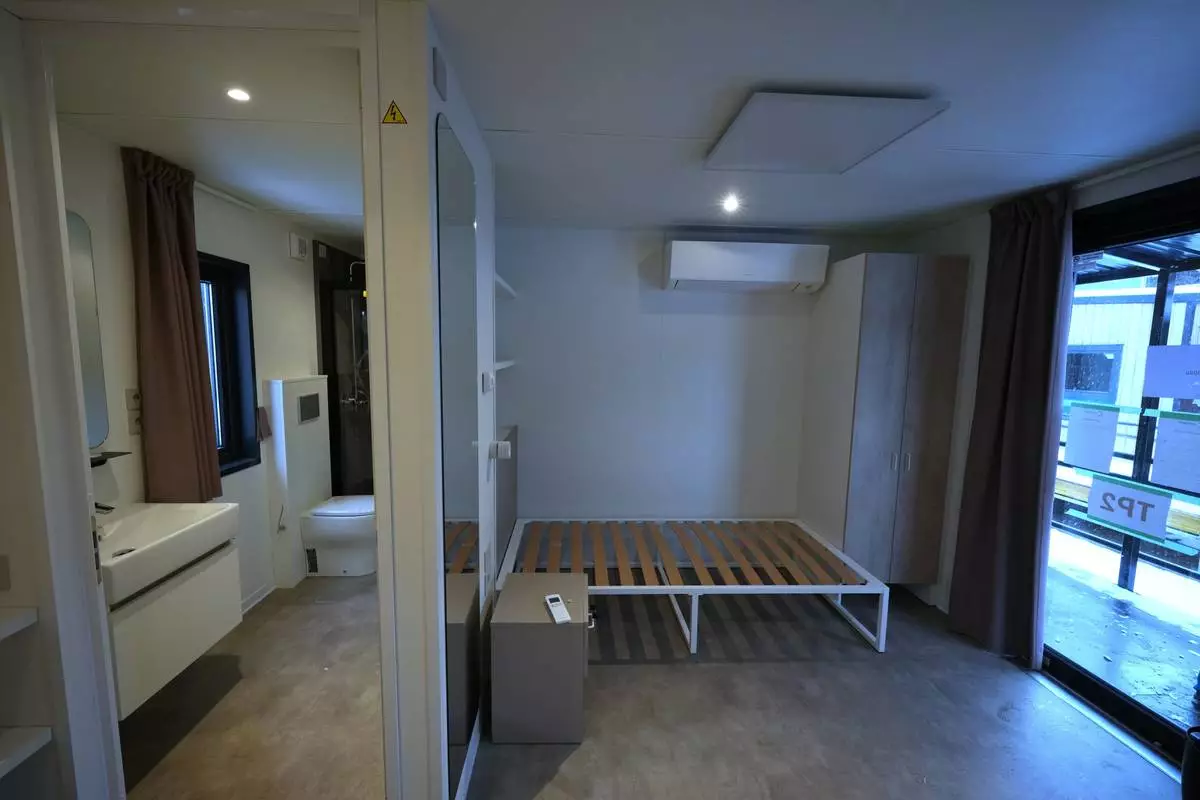 A view of the interior of one of the trailer homes at the athlete's village for the Cortina Milan Winter Olympics, in Cortina D'Ampezzo, Italy, Monday, Nov. 24, 2025. (AP Photo/Andrew Medichini)